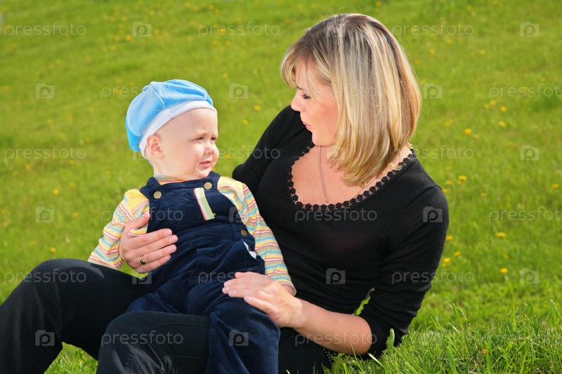 Мама с сыном на лугу