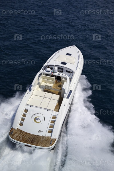 Италия, Тоскана, Виареджо. Моторная яхта Текномар Мадрас 20 (20 метров) класса люкс, вид с воздуха