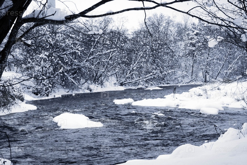 Зимний лес и река