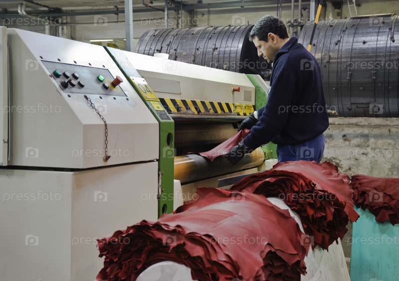 Италия, Неаполь. Покраска коровьей кожи на кожевенной фабрике