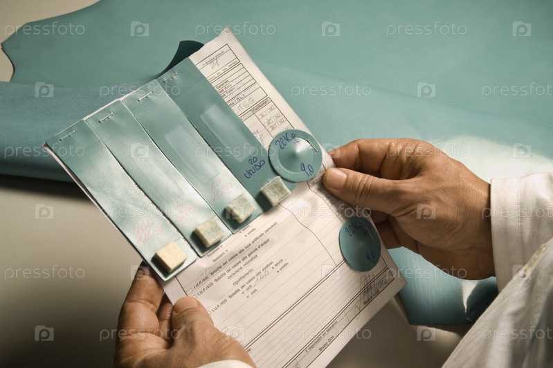 Италия, Неаполь, коровья кожа на цветовом тесте на фабрике