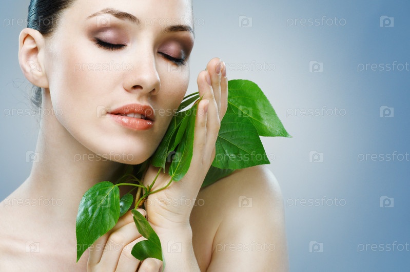 Красивая девушка с листьями растения