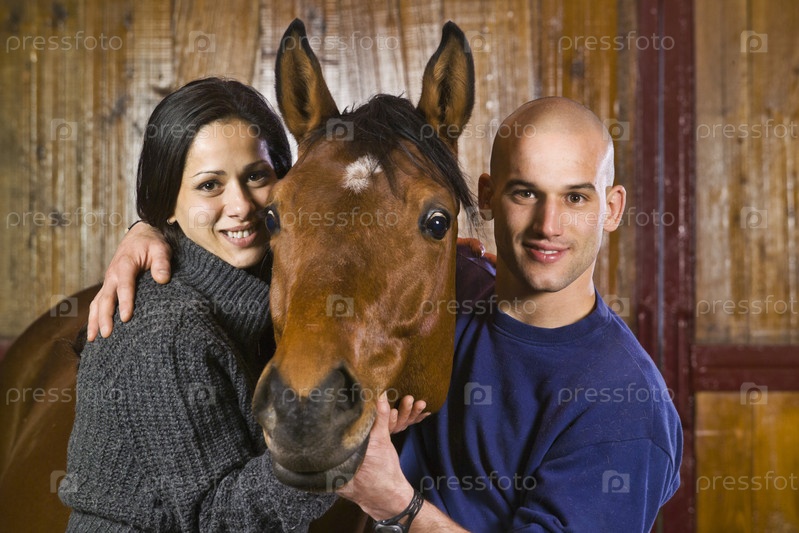 Молодая пара с конем