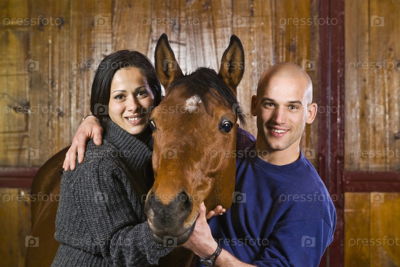 Молодая пара с конем