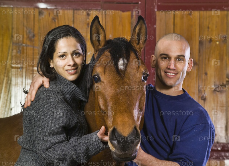 Молодая пара с конем