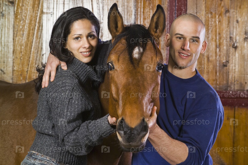 Молодая пара с конем