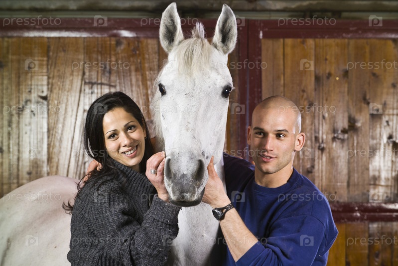 Молодая пара с конем