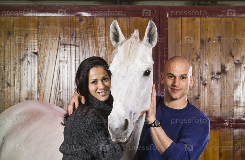 Молодая пара с конем