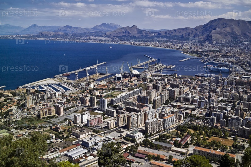 Италия, Сицилия, Палермо, вид на город и порт с горы Пеллегрино