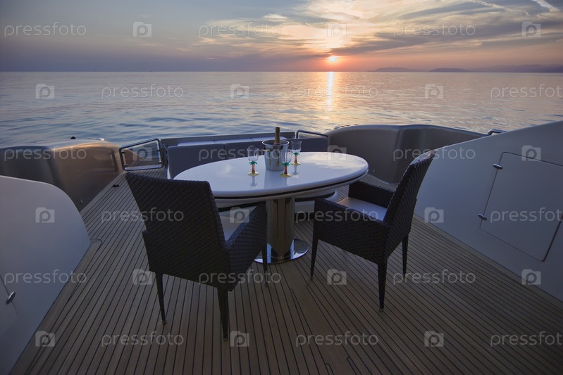 Стол на палубе роскошной яхты