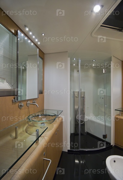 Франция, Канны, роскошная яхта Континенталь 80 (верфь Кантьери Навали дель Медитерранео), ванная комната