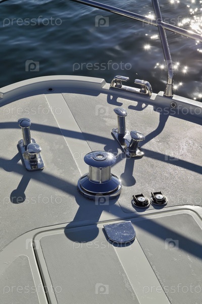 Франция, Канны, роскошная яхта Континенталь 80 (верфь Кантьери Навали дель Медитерранео), лебедка крупным планом