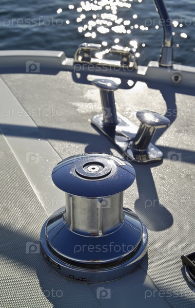 Франция, Канны, роскошная яхта Континенталь 80 (верфь Кантьери Навали дель Медитерранео), лебедка крупным планом