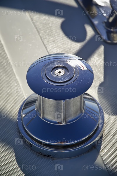 Франция, Канны, роскошная яхта Континенталь 80 (верфь Кантьери Навали дель Медитерранео), лебедка крупным планом
