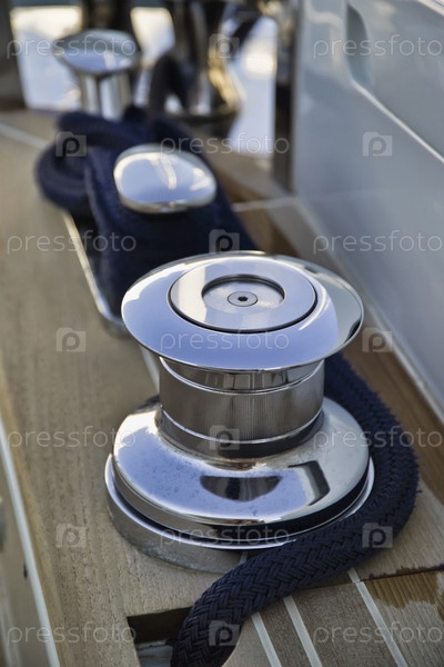 Франция, Канны, роскошная яхта Континенталь 80 (верфь Кантьери Навали дель Медитерранео), лебедка крупным планом