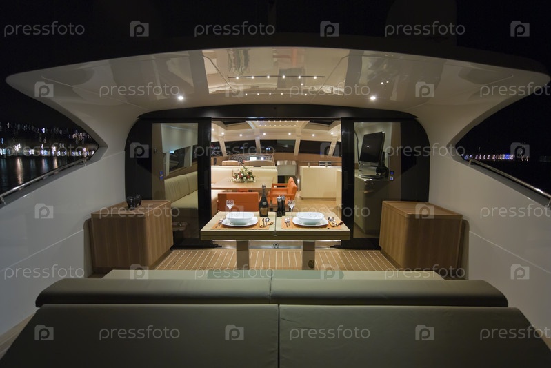 Франция, Канны, роскошная яхта Континенталь 80 (верфь Кантьери Навали дель Медитерранео), столовая