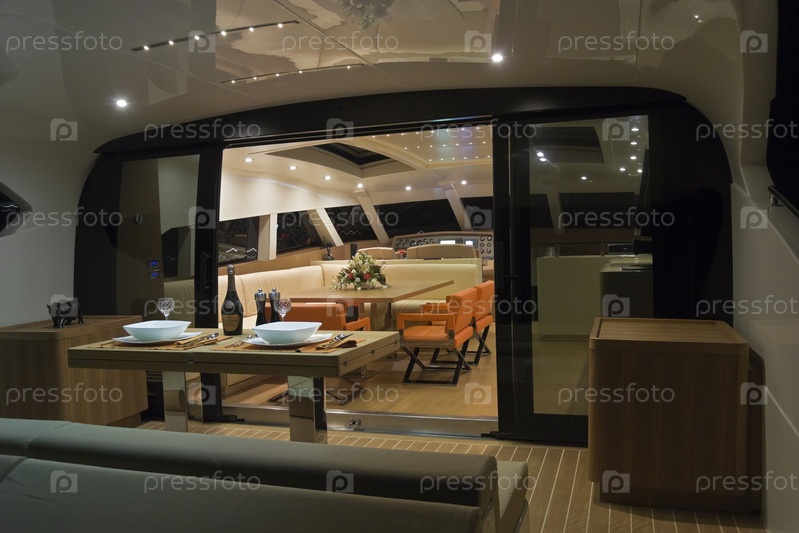 Франция, Канны, роскошная яхта Континенталь 80 (верфь Кантьери Навали дель Медитерранео), столовая