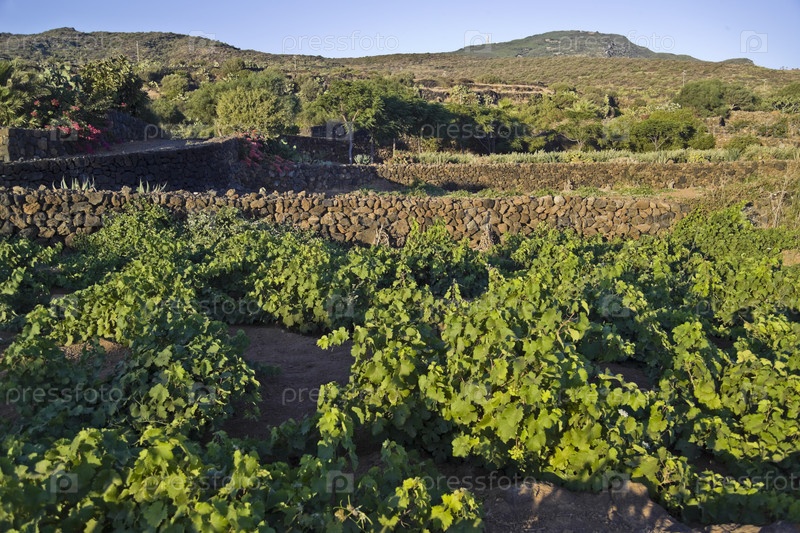 Италия, Сицилия, остров Пантеллерия. Виноградники в сельской местности острова