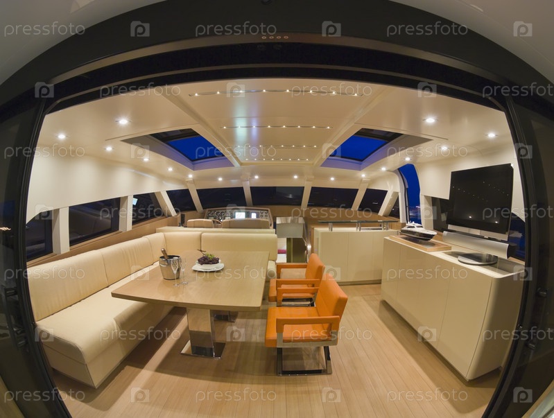 Франция, Канны, яхта Континенталь 80 класса люкс (производство завода по строительству катеров Cantieri Navali del Mediterraneo), столовая