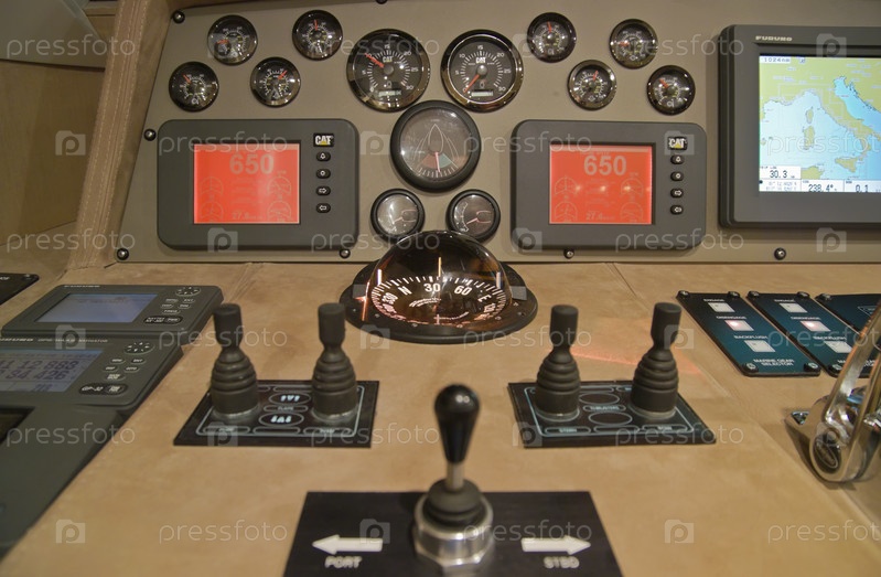 Франция, Канны, яхта Континенталь 80 класса люкс (производство завода по строительству катеров Cantieri Navali del Mediterraneo), приборная панель