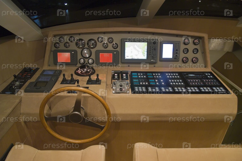 Франция, Канны, яхта Континенталь 80 класса люкс (производство завода по строительству катеров Cantieri Navali del Mediterraneo), приборная панель