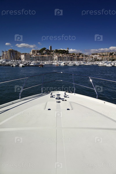 Франция, Канны, роскошная яхта Континенталь 80 (верфь Кантьери Навали дель Медитерранео), вид на гавань