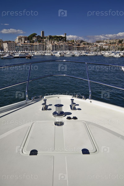 Франция, Канны, роскошная яхта Континенталь 80 (верфь Кантьери Навали дель Медитерранео), вид на гавань