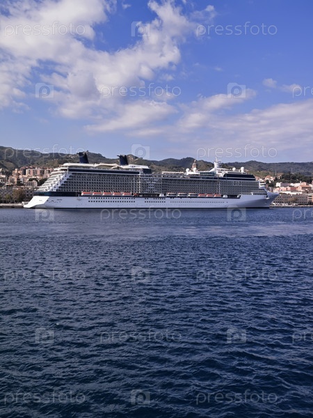 Италия, Сицилия, Мессина, большое круизное судно в порту