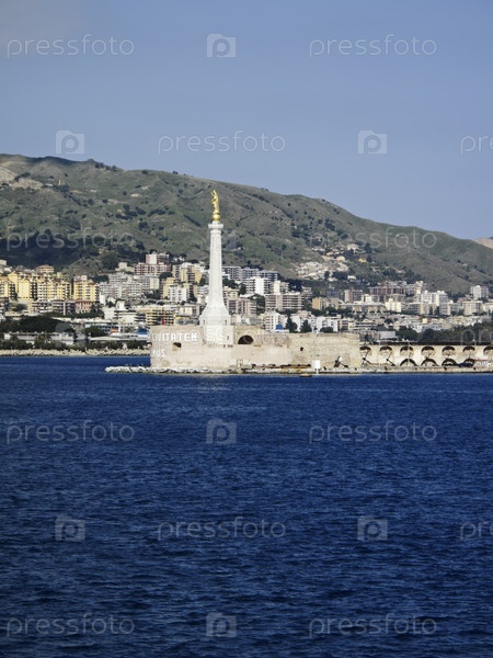 Италия, Сицилия, Мессина, город и статуя Мадонны на входе в порт