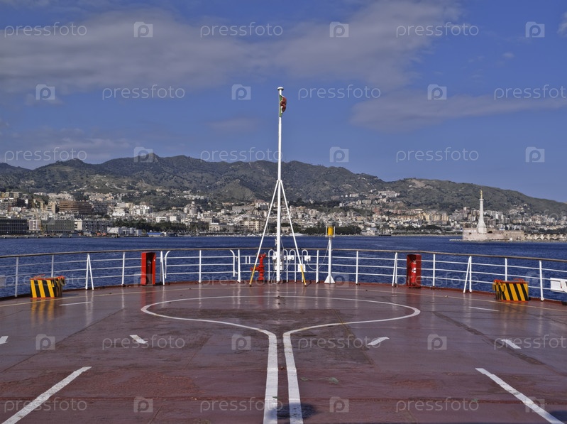 Италия, Сицилия, Мессина, панорамный вид на город и порт с паромной переправы, соединяющей Сицилию с Апеннинским полуостровом и пересекающей Сицилийский канал