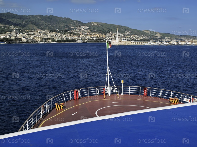 Италия, Сицилия, Мессина, панорамный вид на город и порт с паромной переправы, соединяющей Сицилию с Апеннинским полуостровом и пересекающей Сицилийский канал