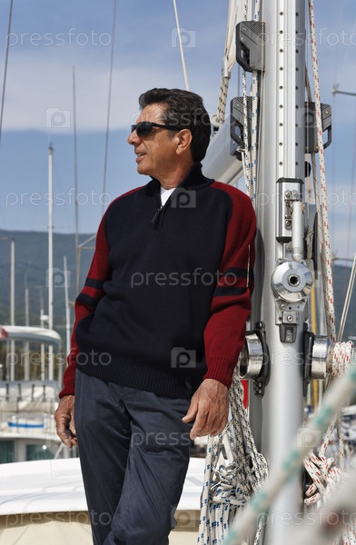 Мужчина средних лет у парусной лодки. Тоскана, Италия