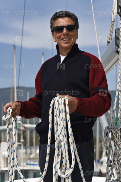 Мужчина средних лет у парусной лодки. Тоскана, Италия
