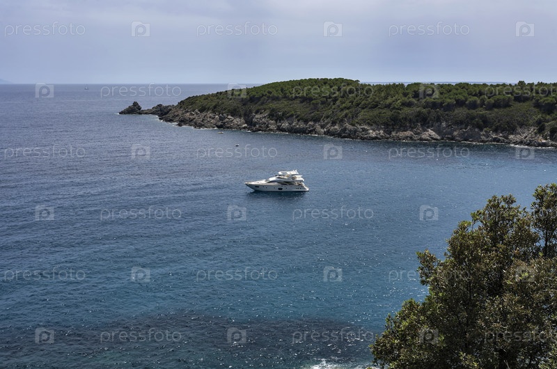 Италия, Тоскана, остров Эльба. Роскошные яхты в бухте возле Порто Адзурро