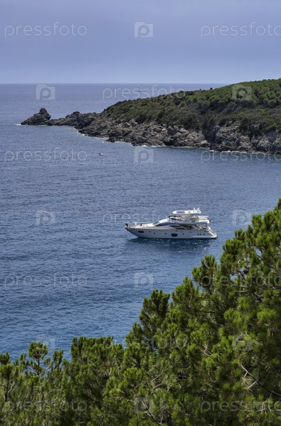 Италия, Тоскана, остров Эльба. Роскошные яхты в бухте возле Порто Адзурро
