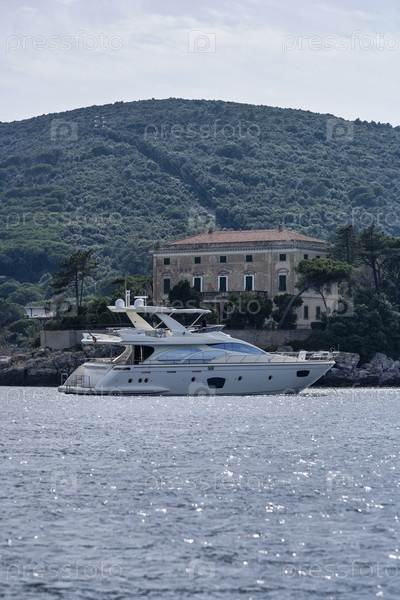 Италия, Тоскана, остров Эльба. Роскошные яхты в бухте возле Порто Адзурро