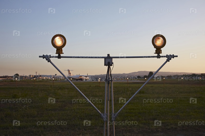 Италия, Неаполь. Международный аэропорт Каподикино. Сигнальные огни на взлетно-посадочной полосе