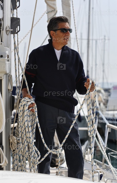 Пожилой мужчина на парусной лодке