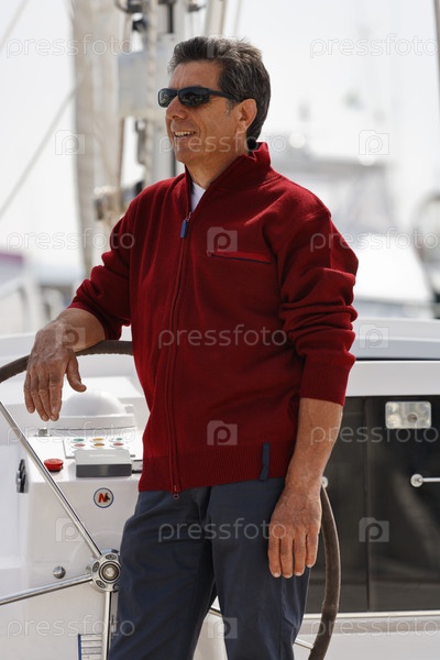 Пожилой мужчина на парусной лодке