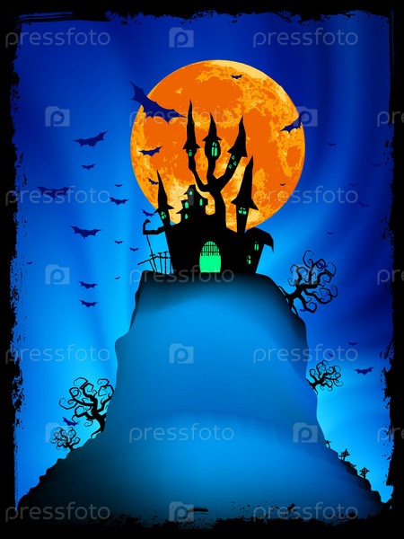 Открытка на Хэллоуин со старым особняком