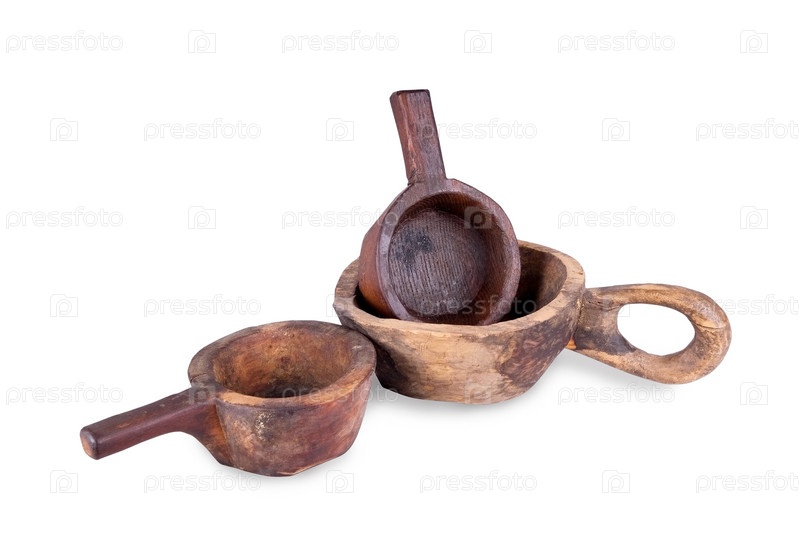Деревянная утварь на белом фоне