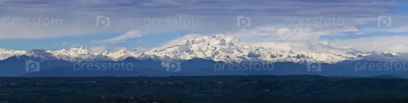 Италия, Пьемонте, панорамный вид итальянских Альп и горы Роза