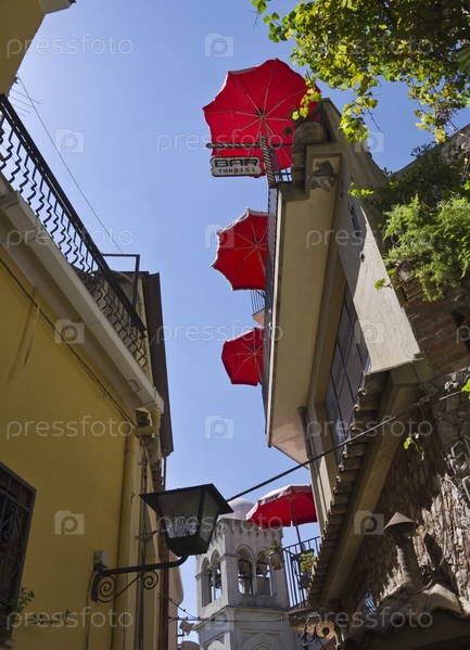 Италия, Сицилия, Кастельмола (Таормина), Бар Турисси, красные зонты