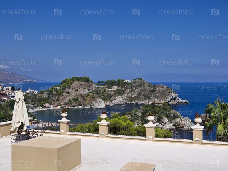 Таормина, Италия, Сицилия, бухта, вид Капо Таормина, побережье Калабрия