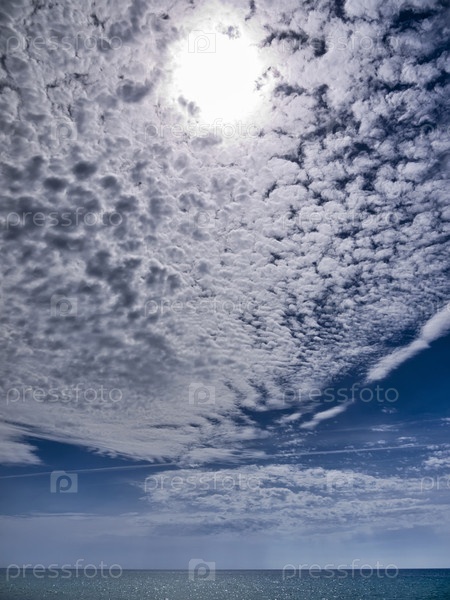 Италия, Сицилия, Донналуката (провинция Рагузы), облака в небе и Средиземное море