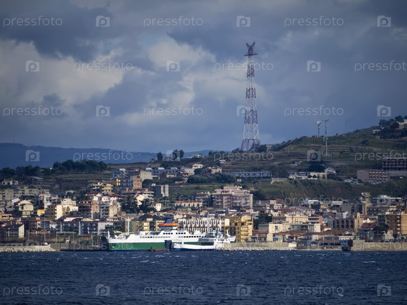 Италия, Калабрия, Вилла Св. Джованни, город и паромы, которые пересекают Сицилийский канал