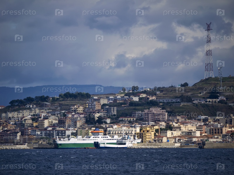 Италия, Калабрия, Вилла Св. Джованни, город и паромы, которые пересекают Сицилийский канал