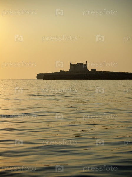 Италия, Сицилия, Портопало ди Капо-Пассеро (провинция Сиракуза), вид на остров-Капо-Пассеро и его древний испанский Форт