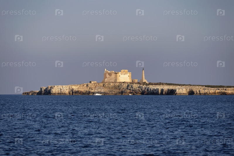 Италия, Сицилия, Портопало ди Капо-Пассеро (провинция Сиракуза), вид на остров-Капо-Пассеро и его древний испанский Форт