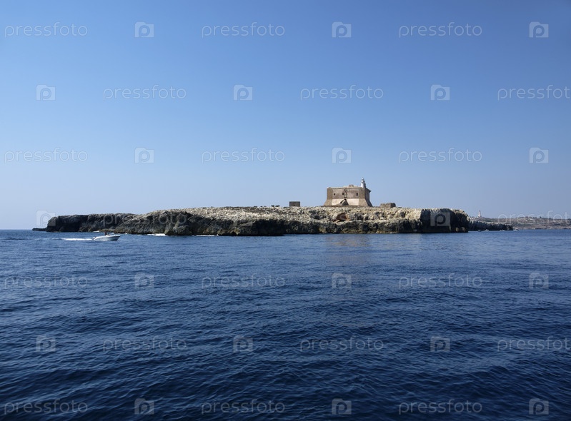 Италия, Сицилия, Портопало ди Капо-Пассеро (провинция Сиракуза), вид на остров-Капо-Пассеро и его древний испанский Форт